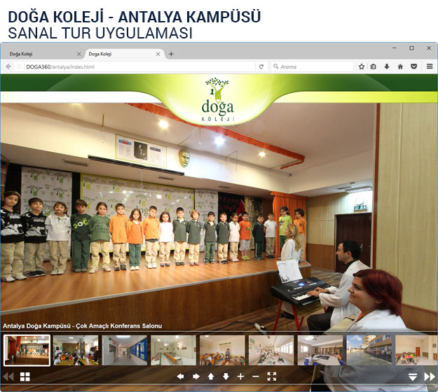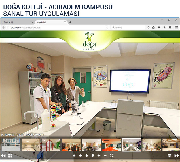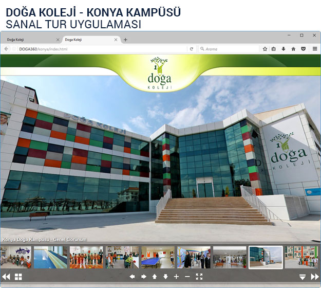 Ülkemizin güzide okullarından Doğa Kolejleri için gerçekleştirdiğimiz 360 Derece Sanal Gezinti Projesi ile tüm kampüsleri monitor karşısından veya mobil cihazlardan gezebilmek artık mümkün…