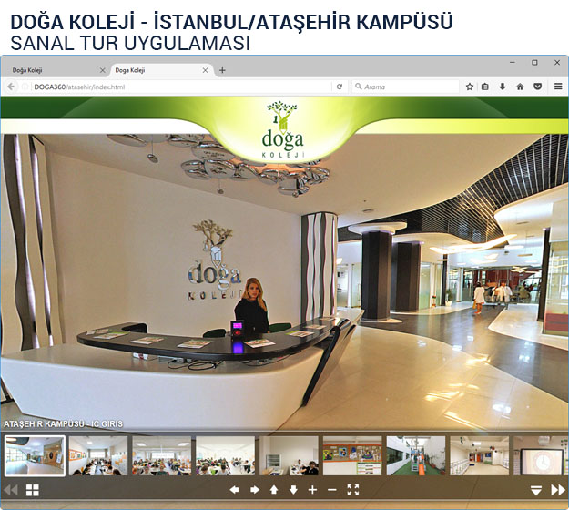 Ülkemizin güzide okullarından Doğa Kolejleri için gerçekleştirdiğimiz 360 Derece Sanal Gezinti Projesi ile tüm kampüsleri monitor karşısından veya mobil cihazlardan gezebilmek artık mümkün…